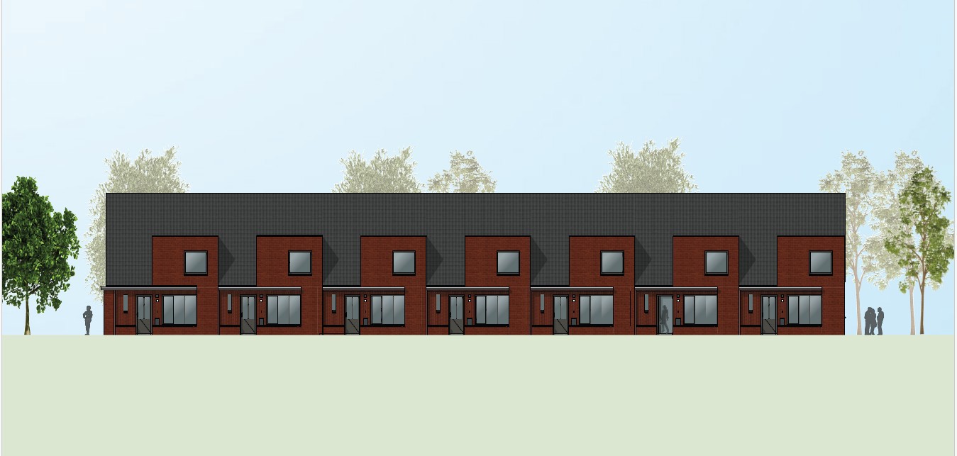 Aan de Schoolstraat in Donkerbroek bouwt Actium 7 levensloopbestendige sociale huurwoningen. De woningen hebben een slaap- en badkamer op de begane grond en twee slaapkamers op de verdieping.
