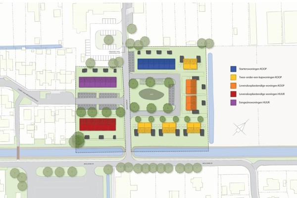 Het plan bestaat uit 12 sociale huurwoningen voor Actium, 7 sociale koopwoningen voor starters en 12 overige koopwoningen gebouwd door Loostad.