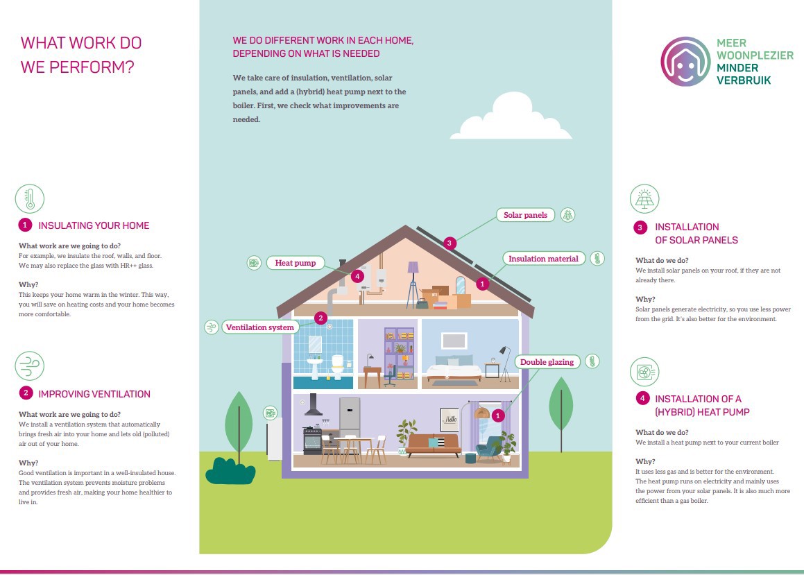 We want you to live comfortably and affordably in a home that uses less energy. Using less energy also aligns with the agreements made by the Netherlands and Europe to live more sustainably, or in other words, to take better care of the environment.
