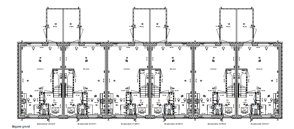 Het zijn rijtjes van 5 of 6 woningen, met een achterom en een aangebouwde berging. De woningen krijgen 3 woonlagen, met 3 of 4 slaapkamers en een badkamer op de eerste verdieping.